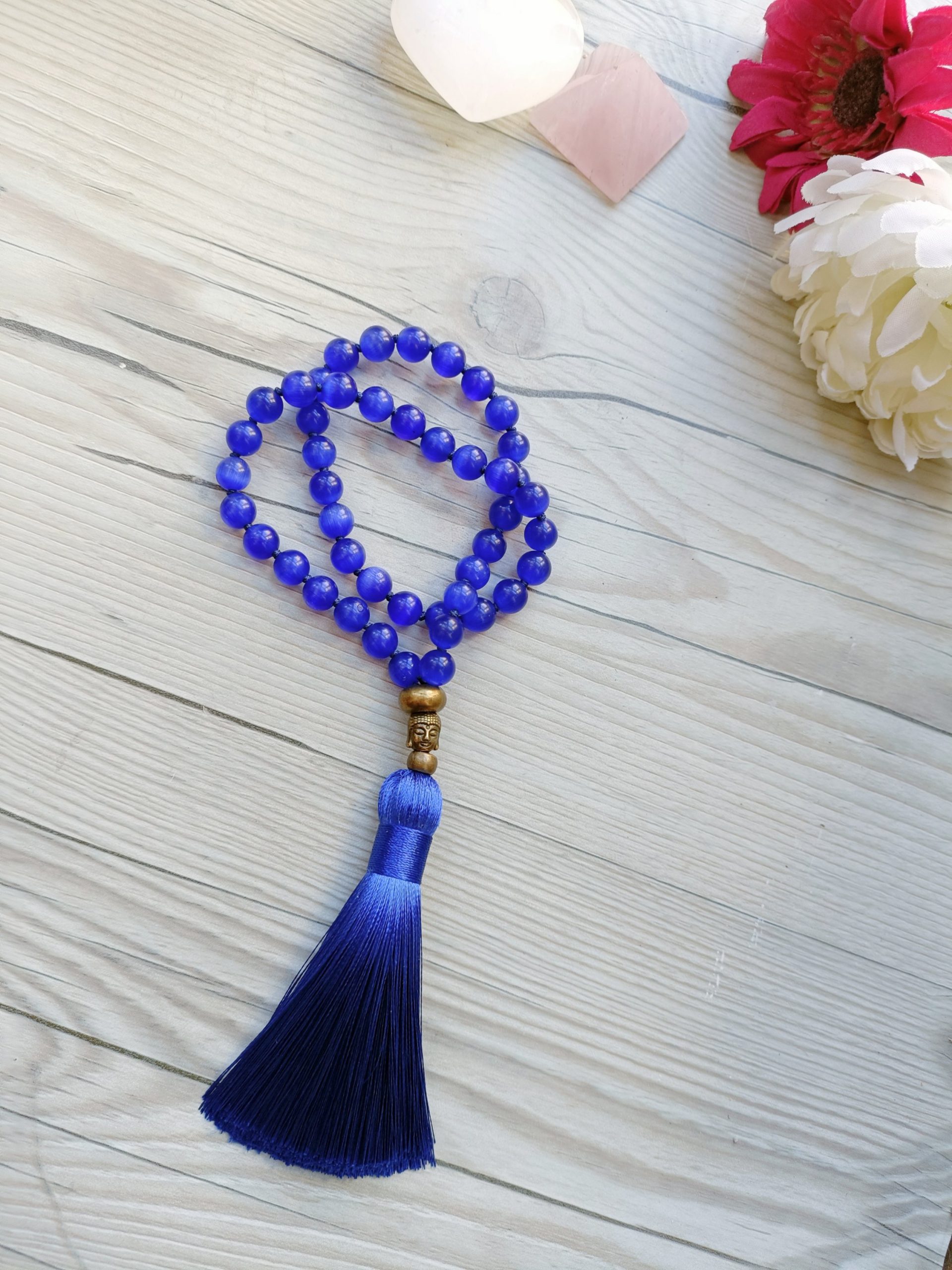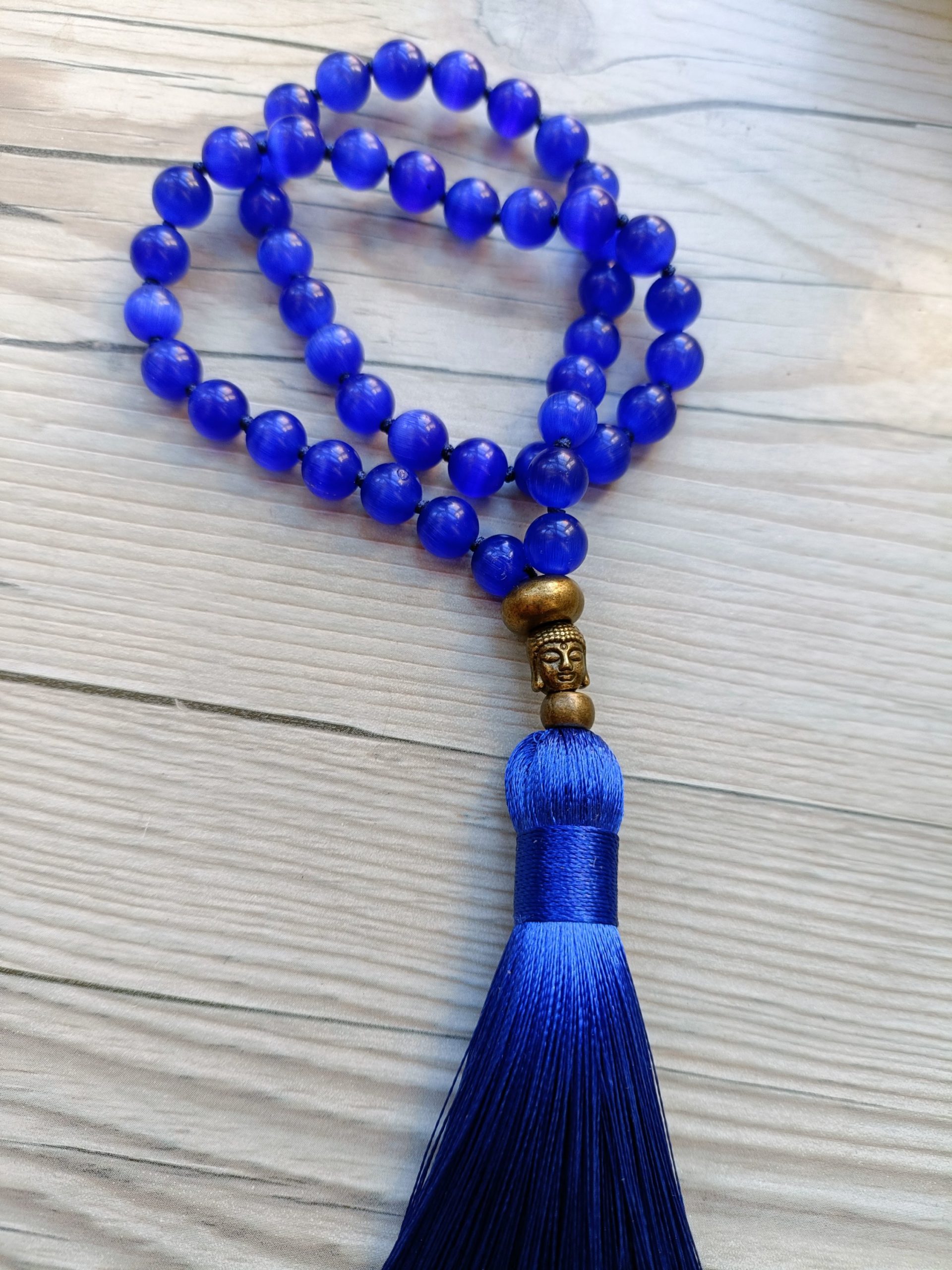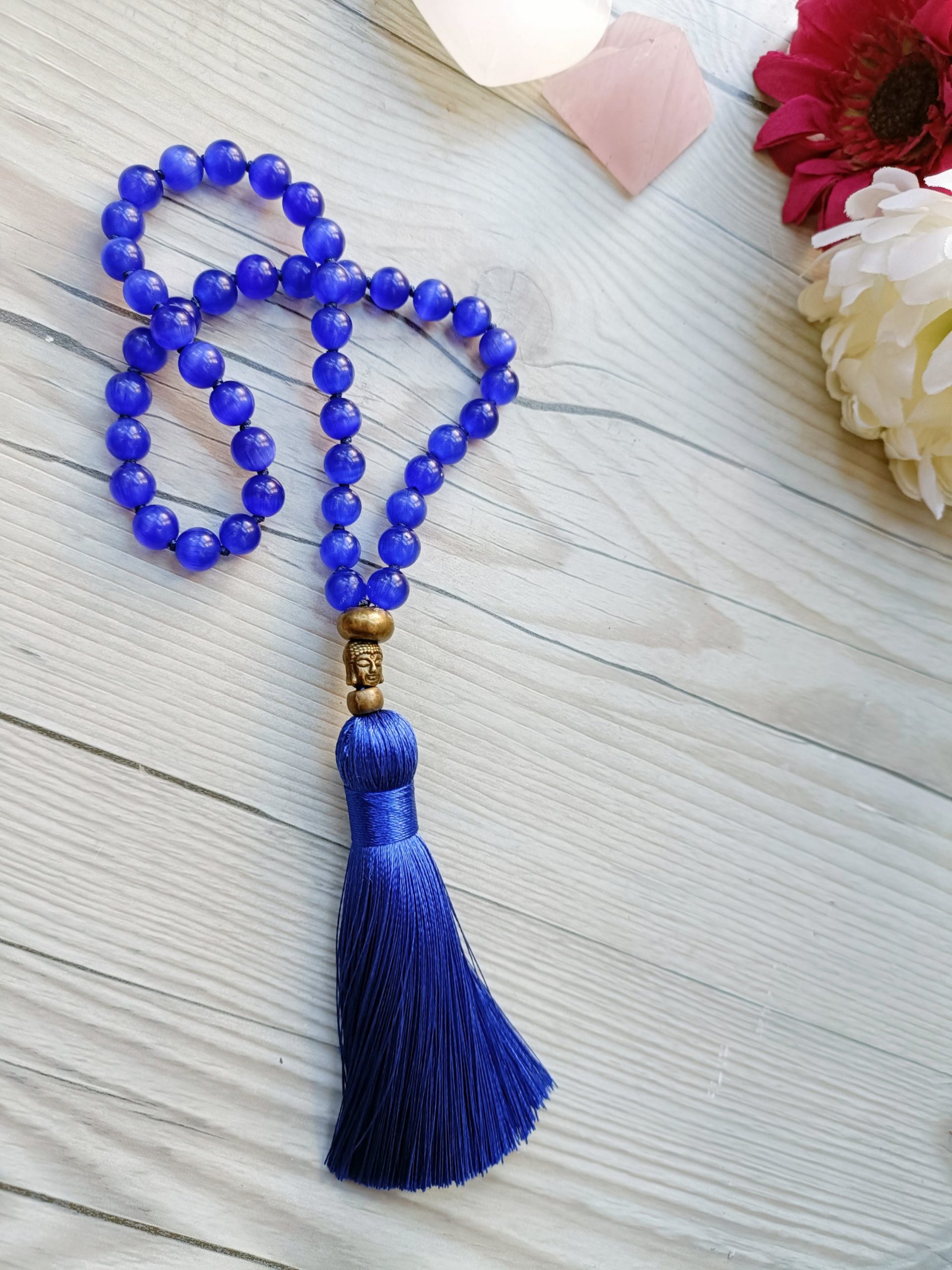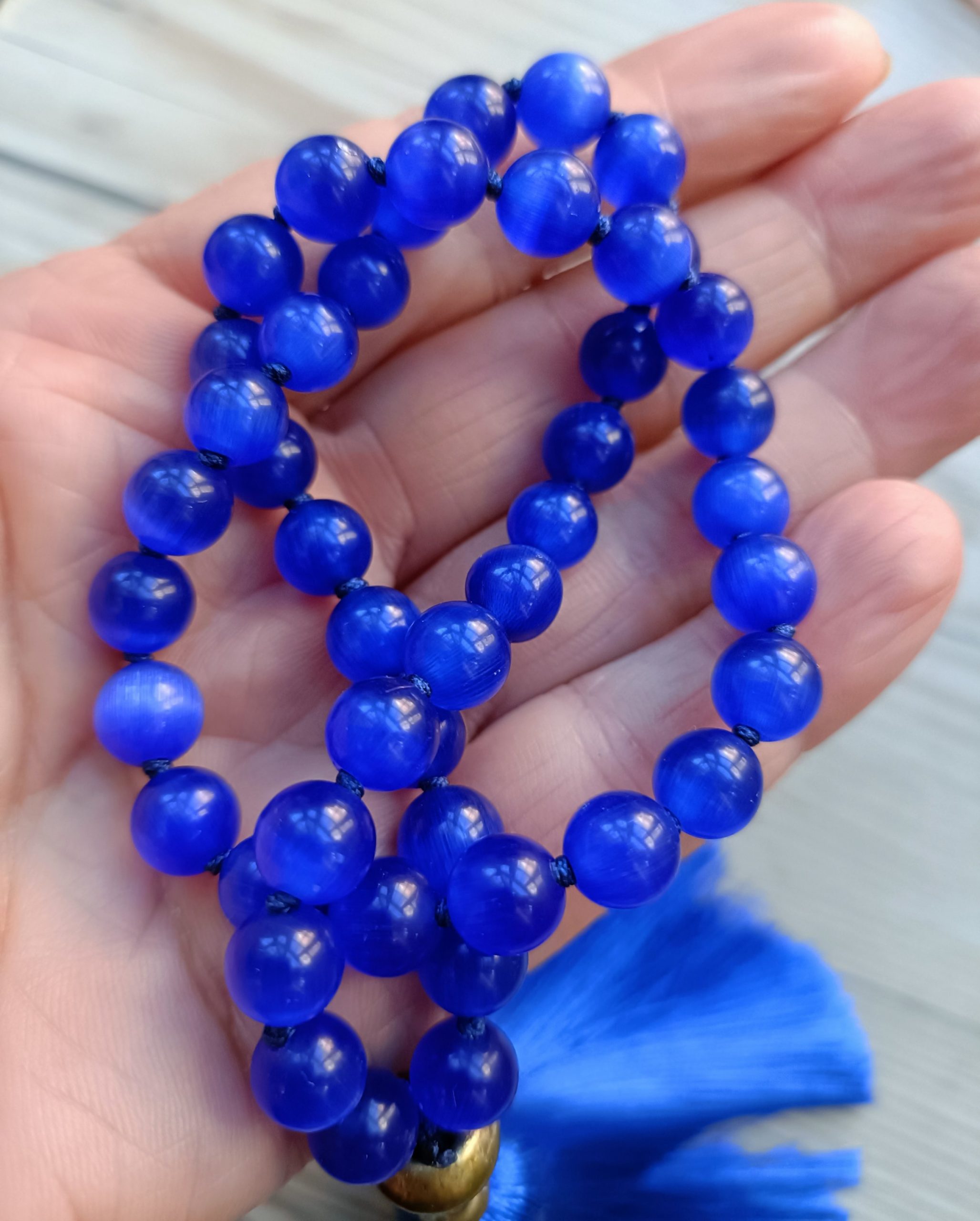 Japa mala de 45 cuentas de ojo de gato o crisoberilo de 8 mm.