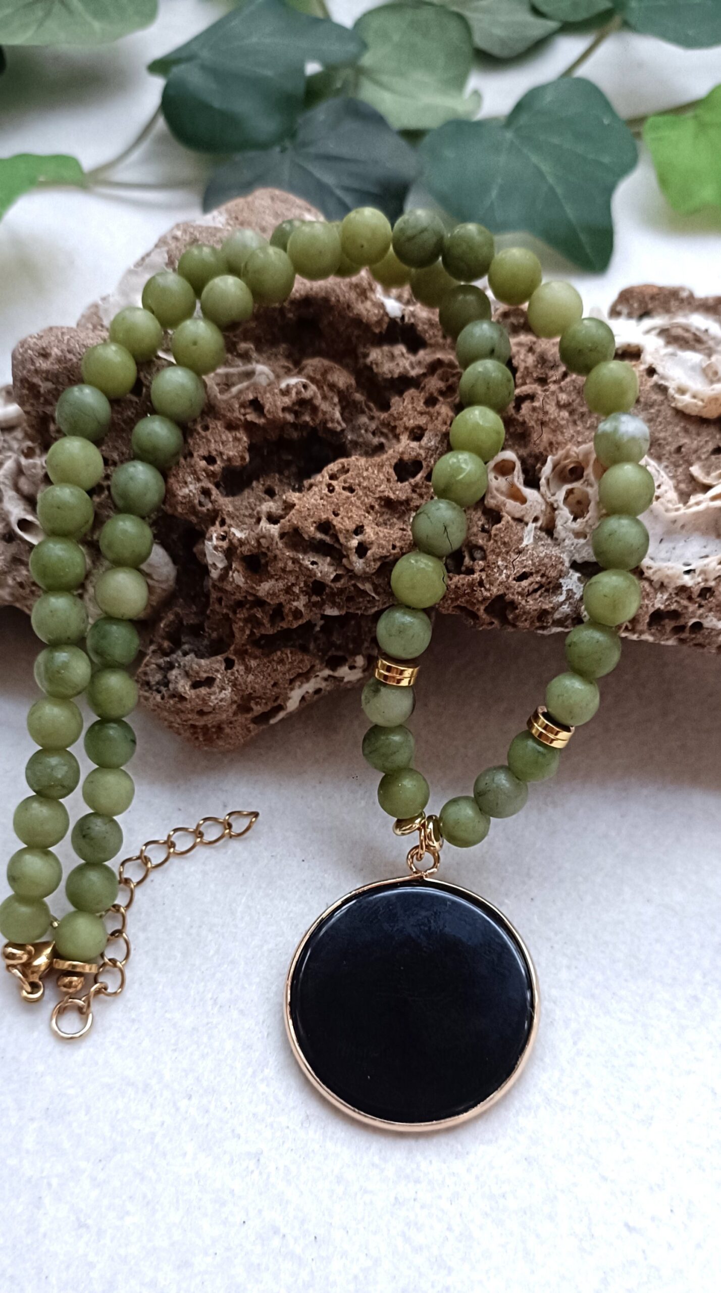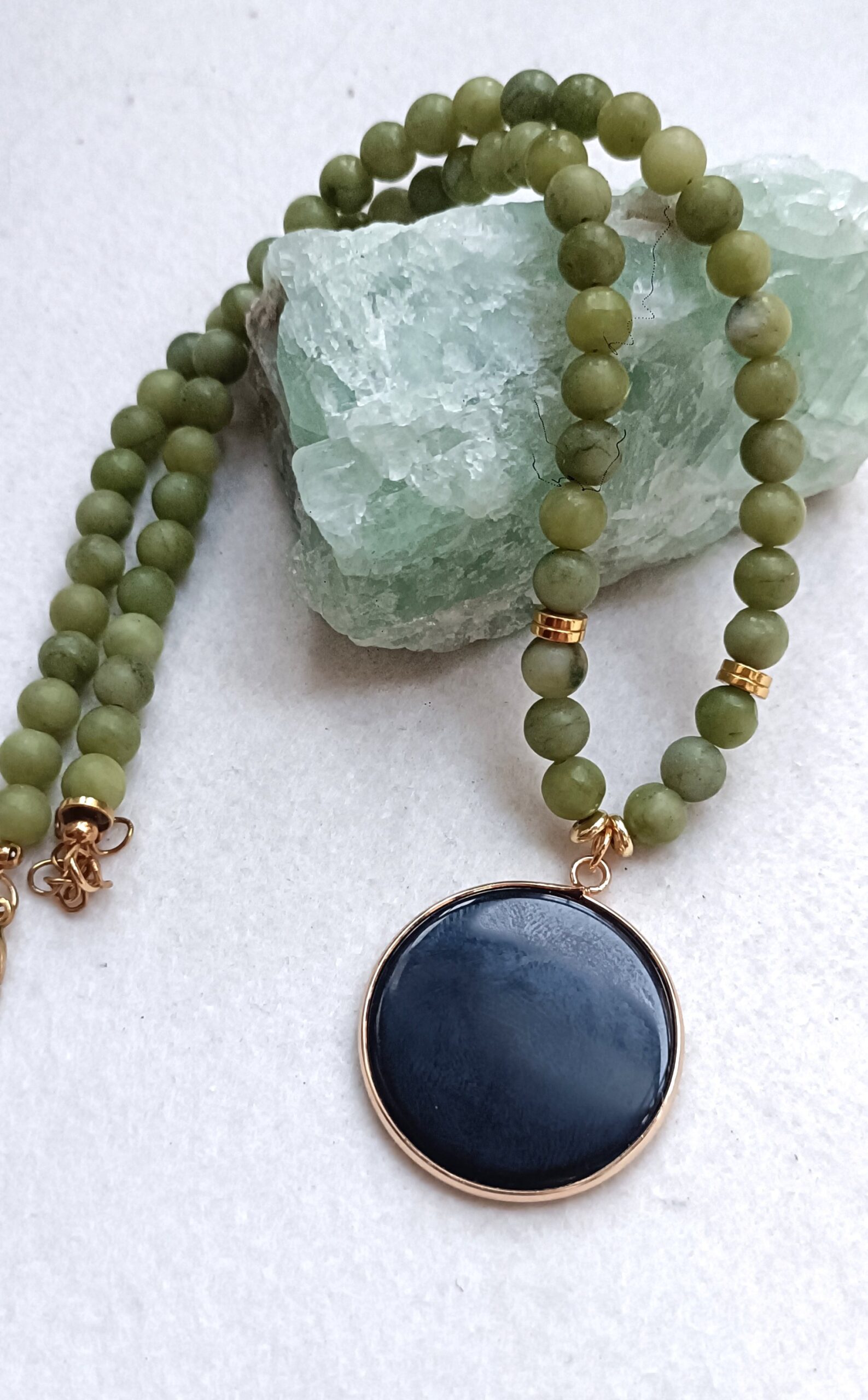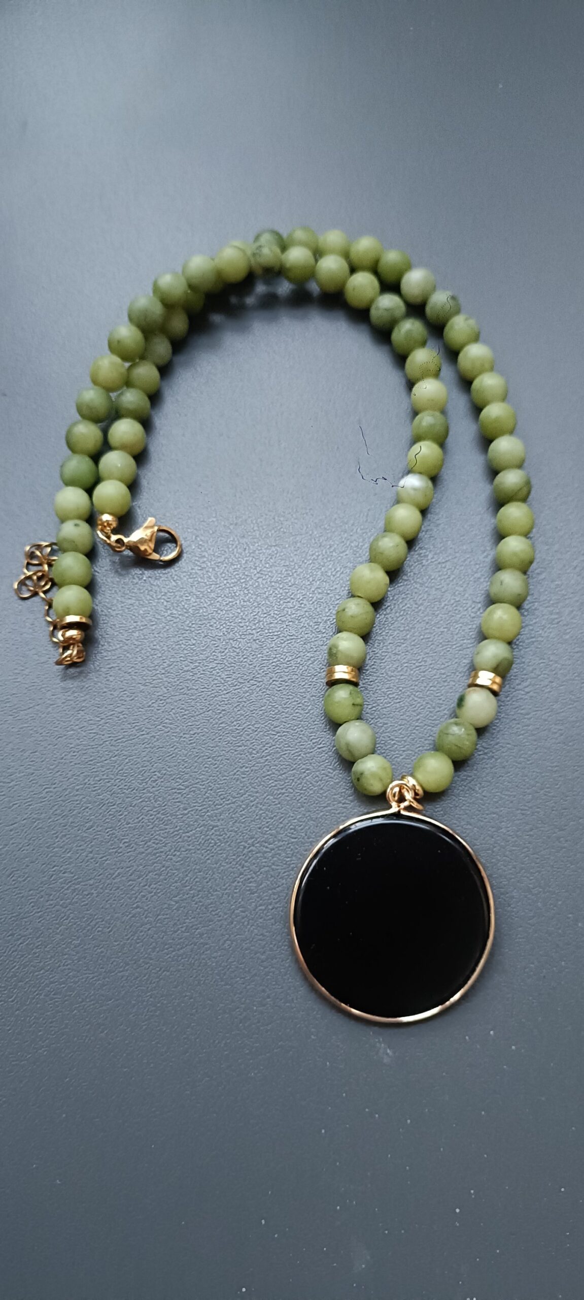 Gargantilla de jade nefrita y una lámina de obsidiana.