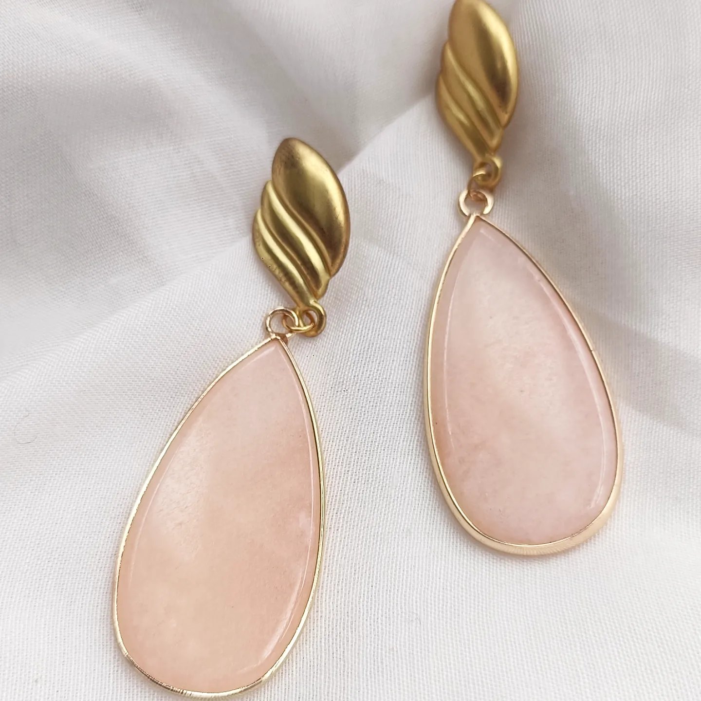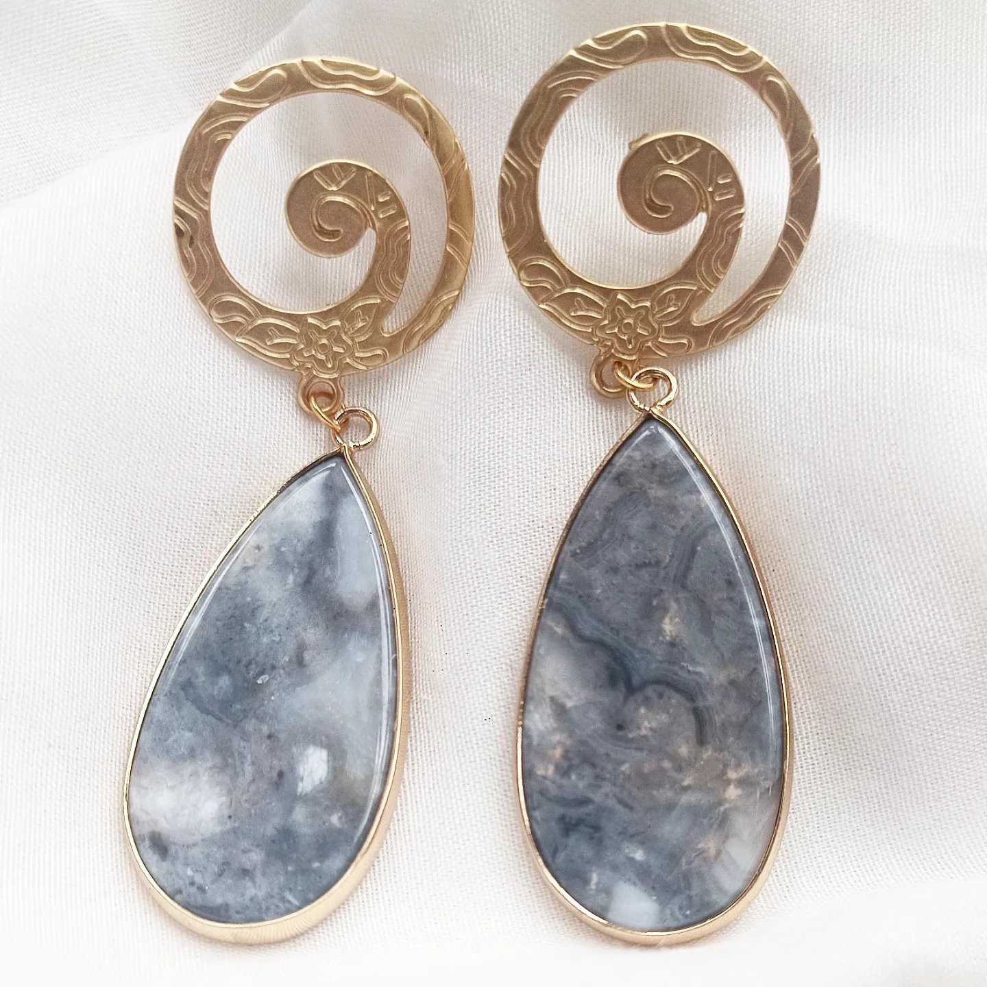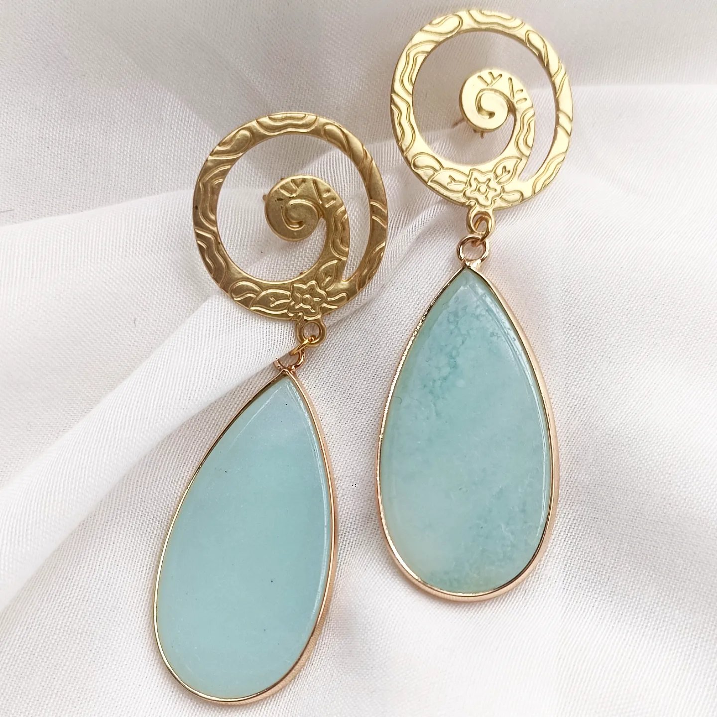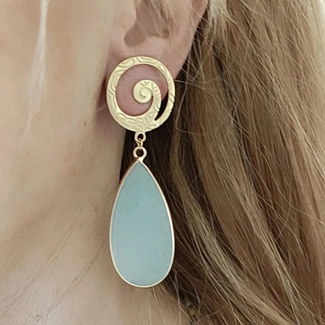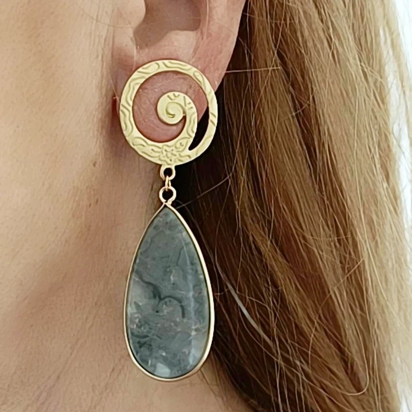Pendientes en agatas o jaspe, según color, todo con fornitura de zamak dorado.