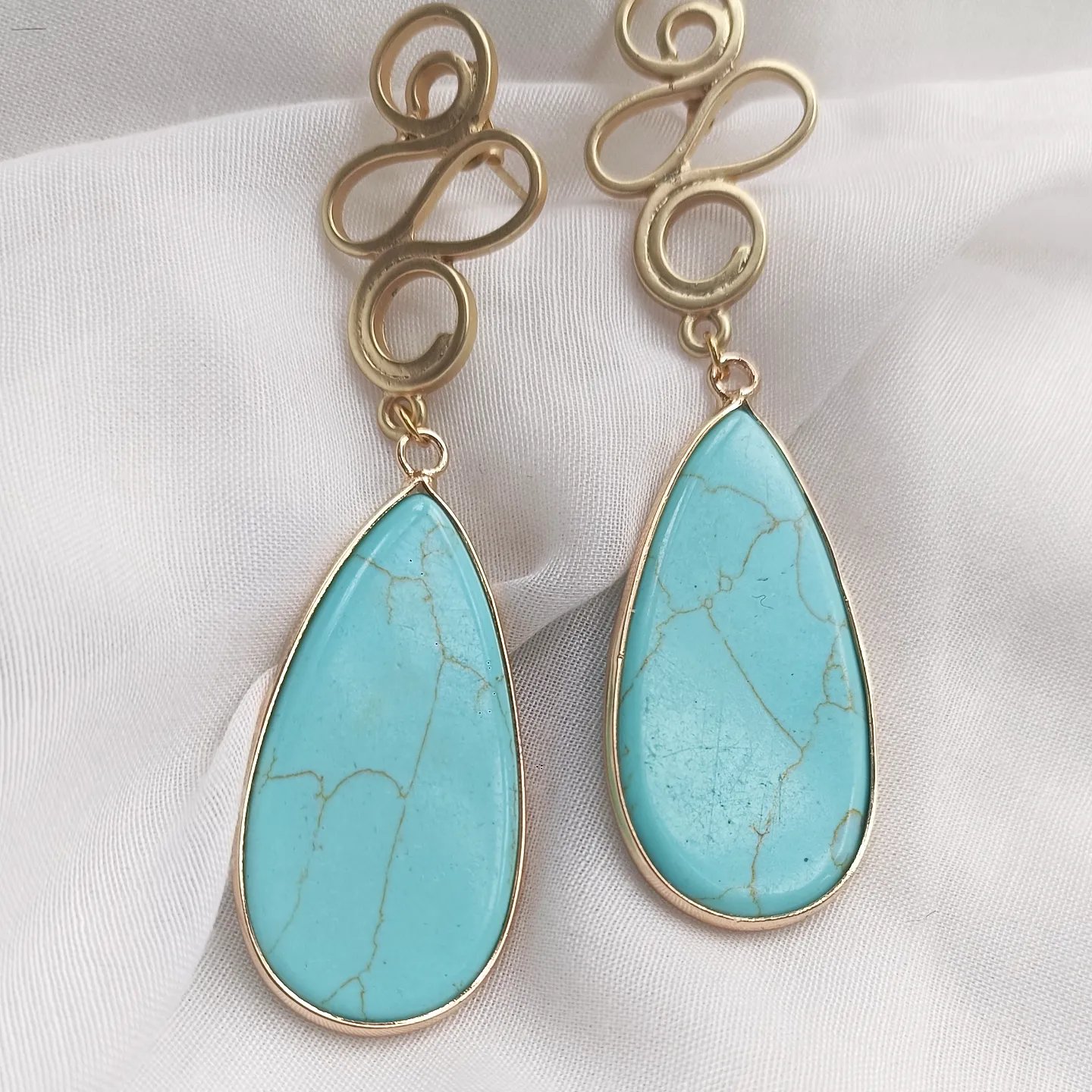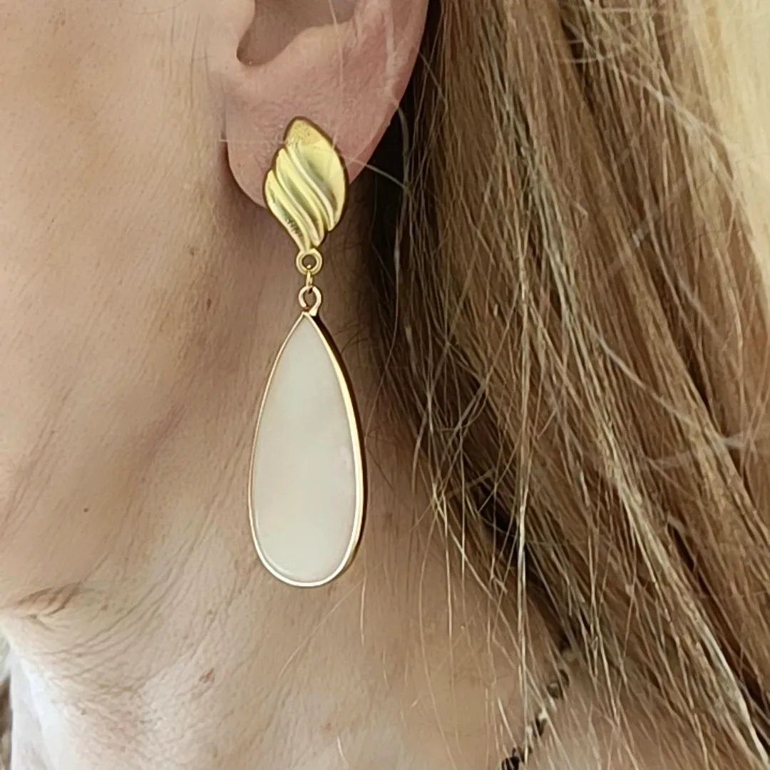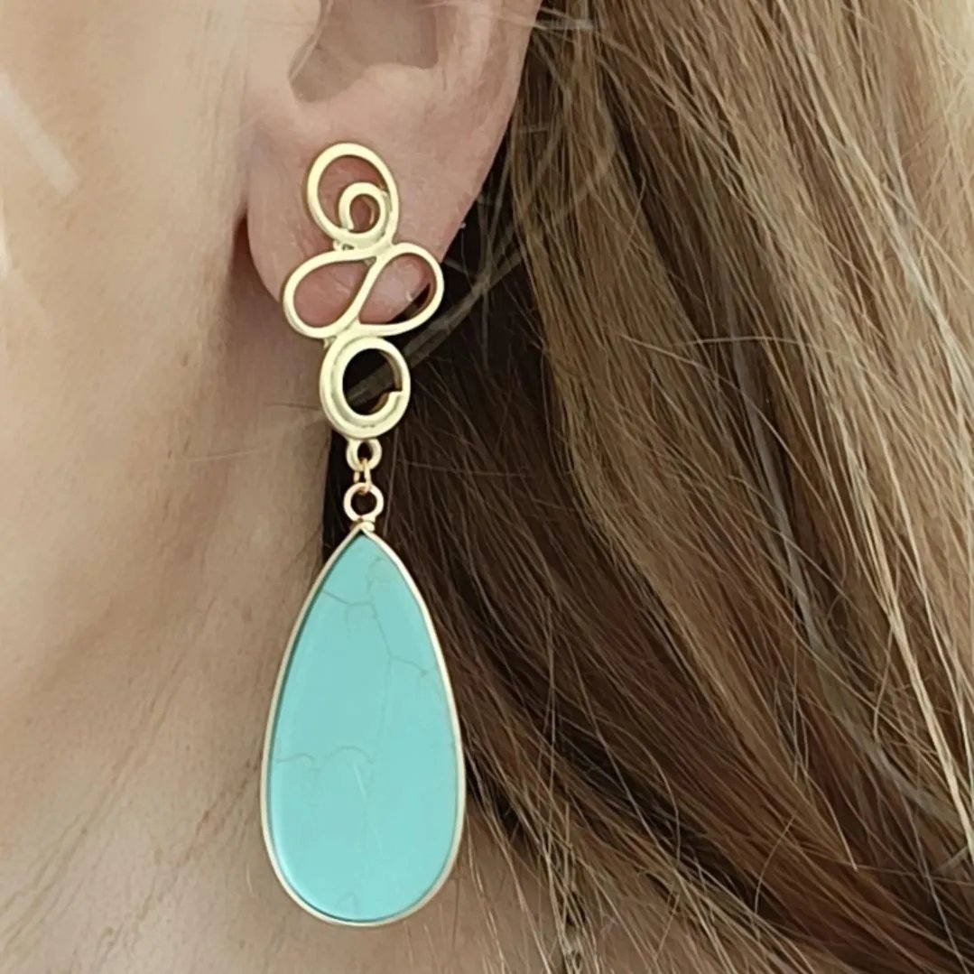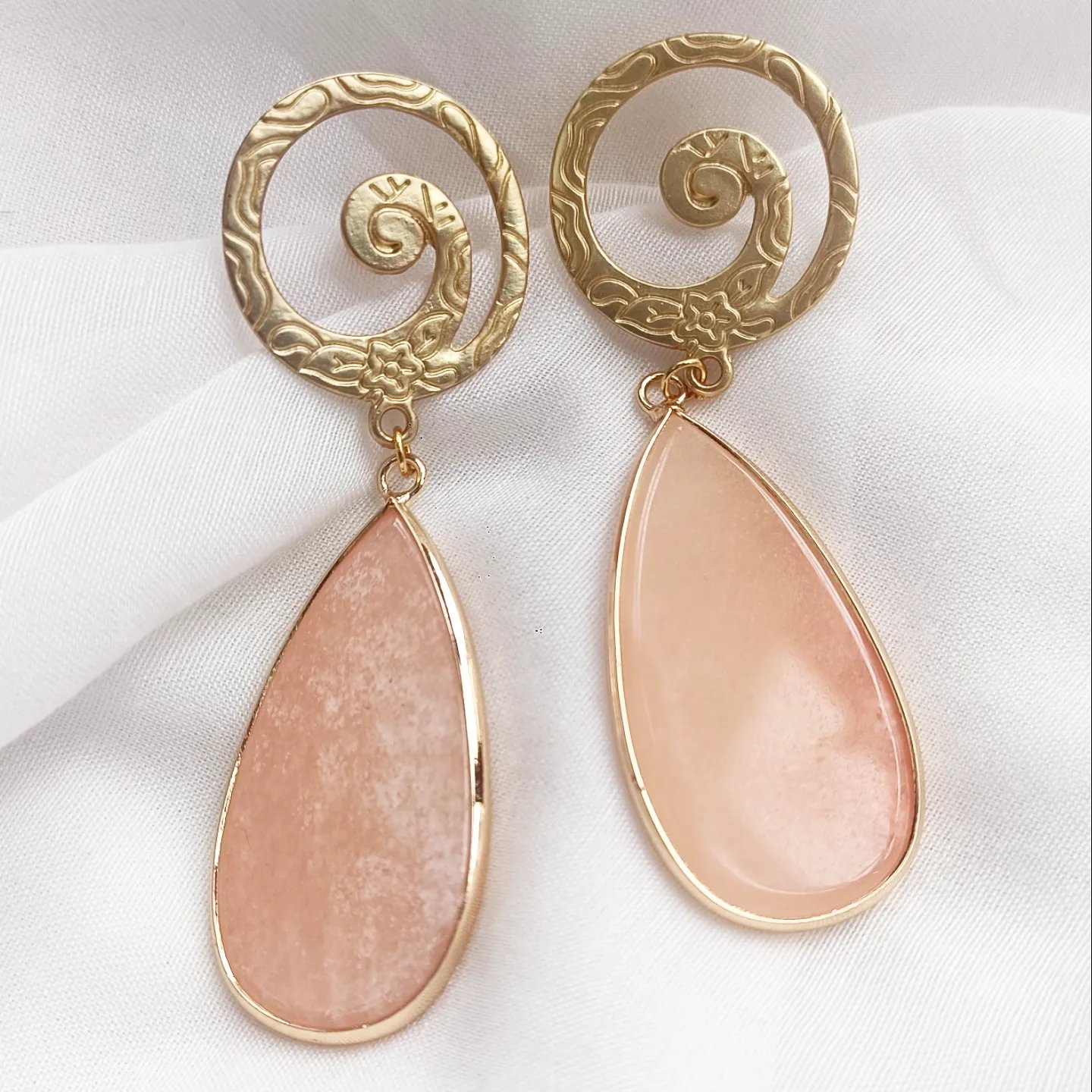 Pendientes en agatas o jaspe, según color, todo con fornitura de zamak dorado.