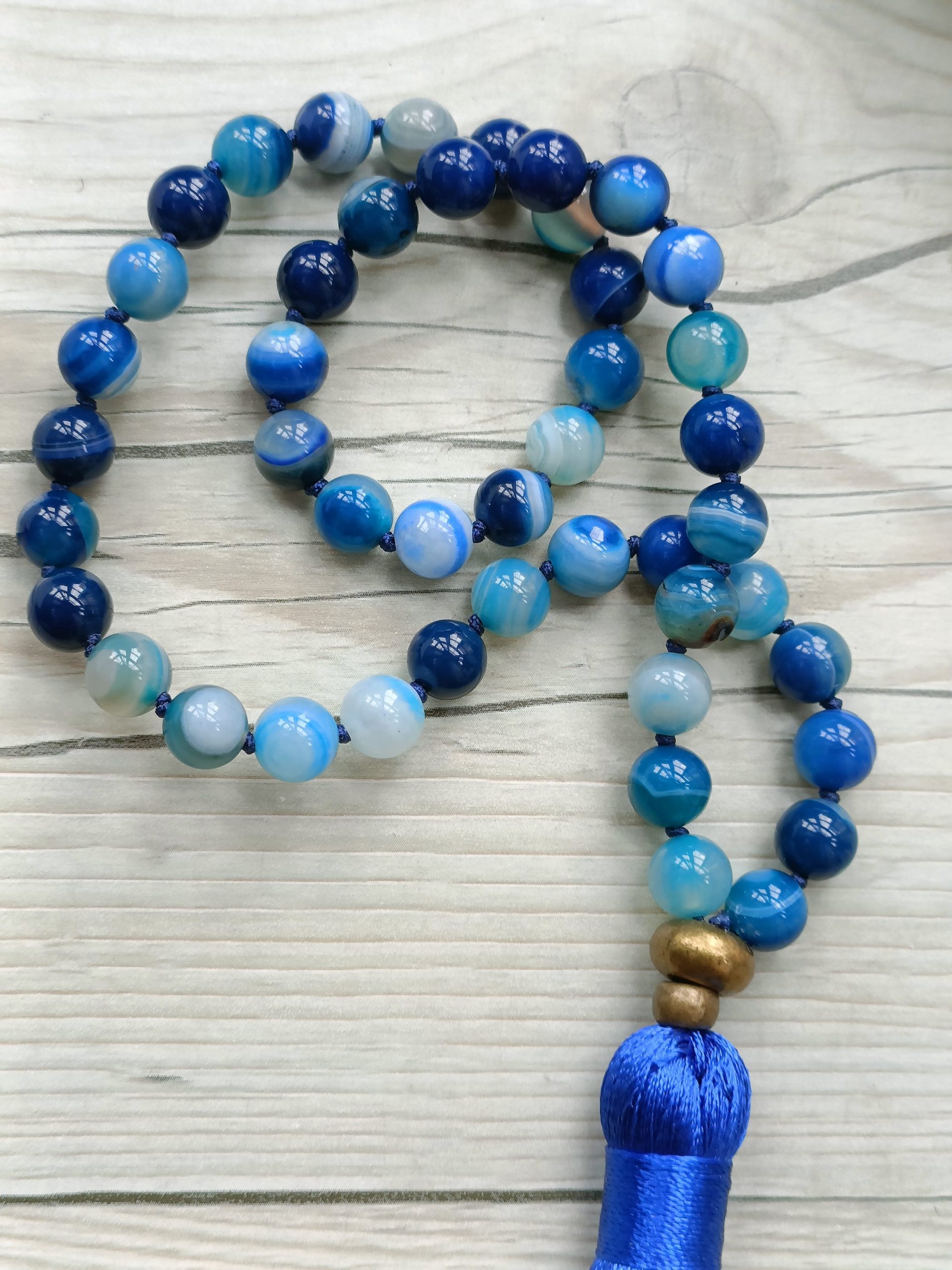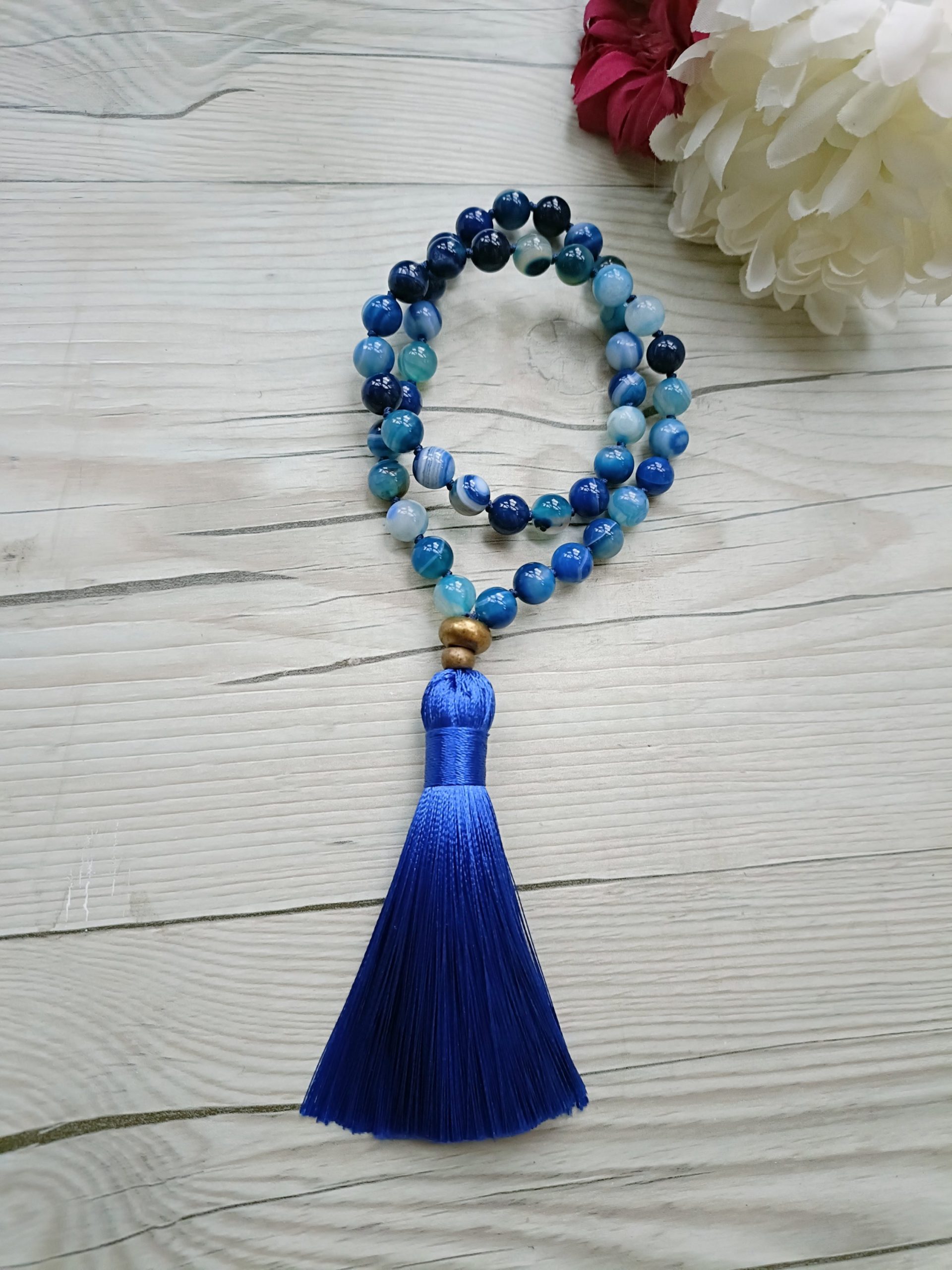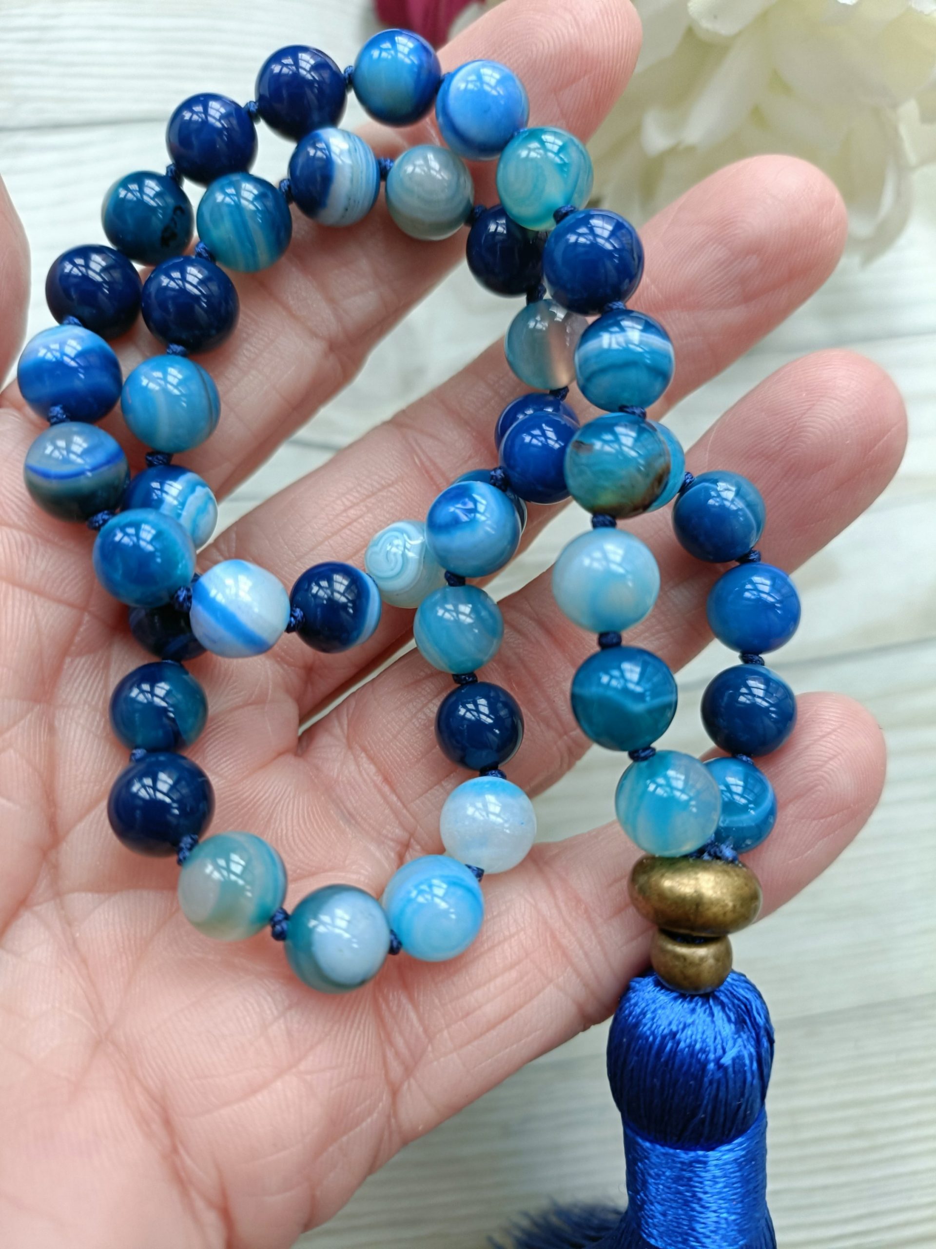 Japa mala de 8mm , anudadas una a una, ofreciendo una gran resistencia y durabilidad.